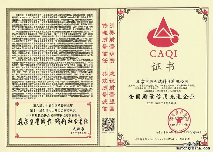 木童2017年獲全國質量信用先進企業